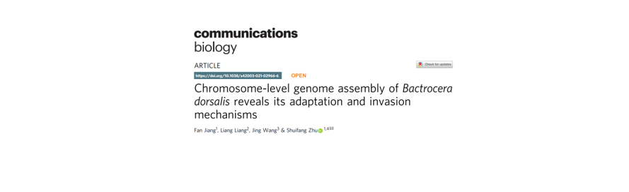 本研究構建的高質量橘小實蠅基因組,將有助于進一步深入了解其復雜的種群結構,并對于全面了解害蟲對逆境的耐受機制,制定創新的害蟲防治策略具有重要的科學意義和理論依據。