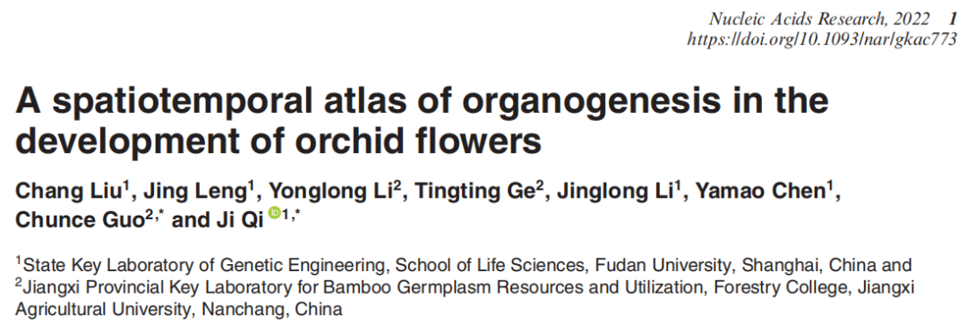 Liu C, Leng J, Li Y, Ge T, Li J, Chen Y, Guo C, Qi J. A spatiotemporal atlas of organogenesis in the development of orchid flowers. Nucleic Acids Res. 2022 Sep 12:gkac773.