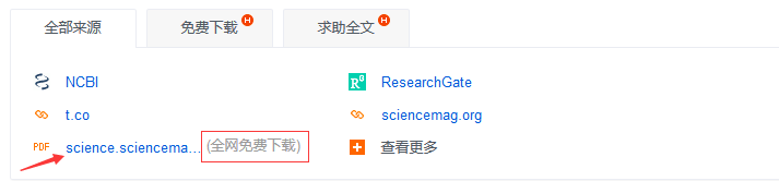 打開http://xueshu.baidu.com/,輸入文獻題目,回車,則出現(xiàn)文獻的詳細信息頁面,下拉會看到全部來源,點擊后面帶“全網(wǎng)免費下載”字樣的,跳轉(zhuǎn)至PDF下載界面,輕松獲得文獻。但是,多數(shù)情況下百度學(xué)術(shù)里面沒有免費的PDF下載資源,這時仍推薦sic-hub。