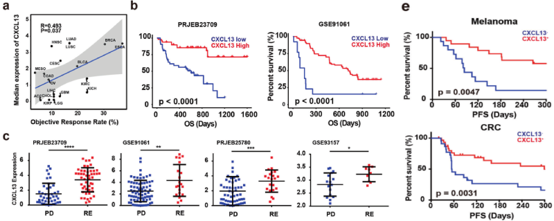 研究內(nèi)容:針對腫瘤特異性抗原(TSA)的個性化免疫療法可以在不損害正常組織的情況下產(chǎn)生有效和安全的抗腫瘤免疫反應(yīng),盡管新抗原疫苗已在臨床試驗中顯示出治療效果,但從腫瘤突變中預(yù)測新抗原仍然具有挑戰(zhàn)性,宿主抗腫瘤免疫反應(yīng)選擇并激活識別腫瘤抗原的T細(xì)胞;因此用來自患者體內(nèi)這些天然存在的腫瘤抗原特異性T(Tas)細(xì)胞的T細(xì)胞受體改造的T細(xì)胞將靶向患者腫瘤中的TSA。本研究揭示了Tas 細(xì)胞的特點是腫瘤富集、腫瘤特異性克隆擴(kuò)增和新抗原特異性;評估了腫瘤中Tas細(xì)胞標(biāo)記物CXCL13的表達(dá)水平可能比來自免疫周期早期步驟的標(biāo)志物(如TMB)更jing q 地預(yù)測對ICB 的反應(yīng);并將CD200和ENTPD1分別鑒定為CD4+和CD8+Tas細(xì)胞的表面標(biāo)志物。