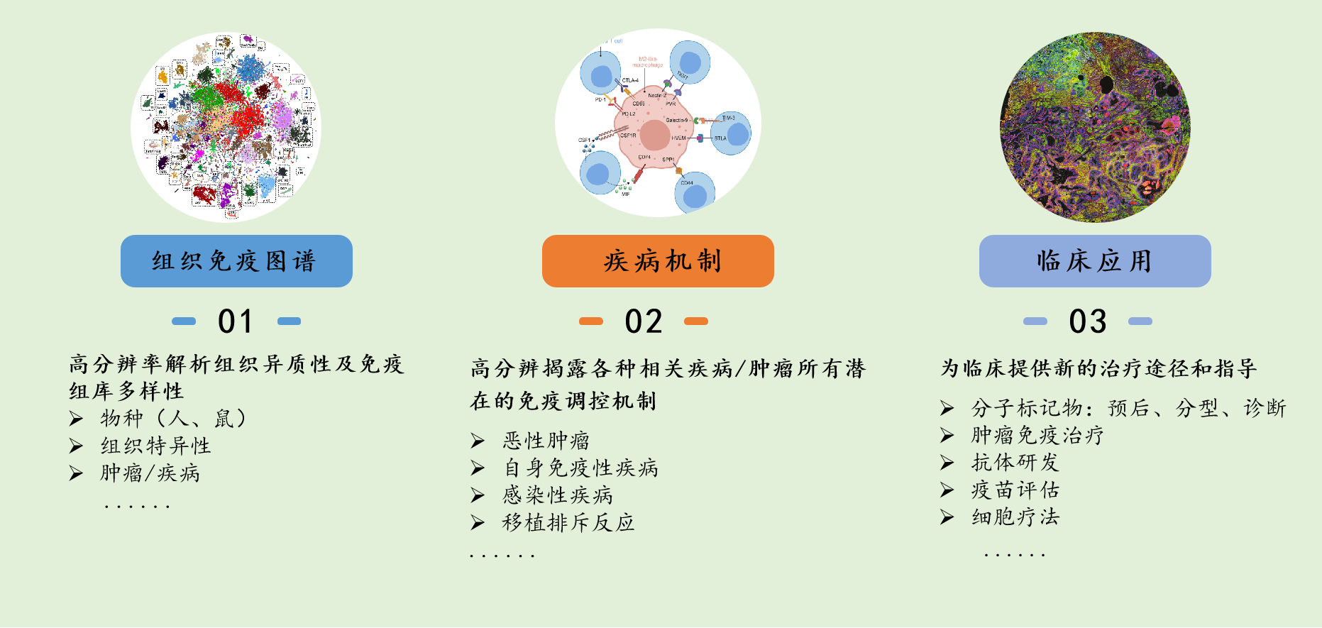 2)利用單細(xì)胞免疫組庫技術(shù),理解腫瘤與免疫的相互作用,尋找惡性腫瘤免疫治療的潛在靶點;揭示移植體抗宿主病背后的生物學(xué)機(jī)制,為免疫調(diào)節(jié)治療提供潛在方向;破譯錯誤導(dǎo)向免疫應(yīng)答的機(jī)制,解析免疫耐受機(jī)制與免疫應(yīng)答動態(tài)調(diào)節(jié)之間的復(fù)雜相互作用;