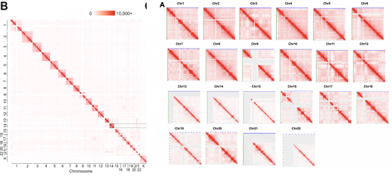 Hi-C檢測(cè)每個(gè)常染色體上染色體內(nèi)和染色體間的互作