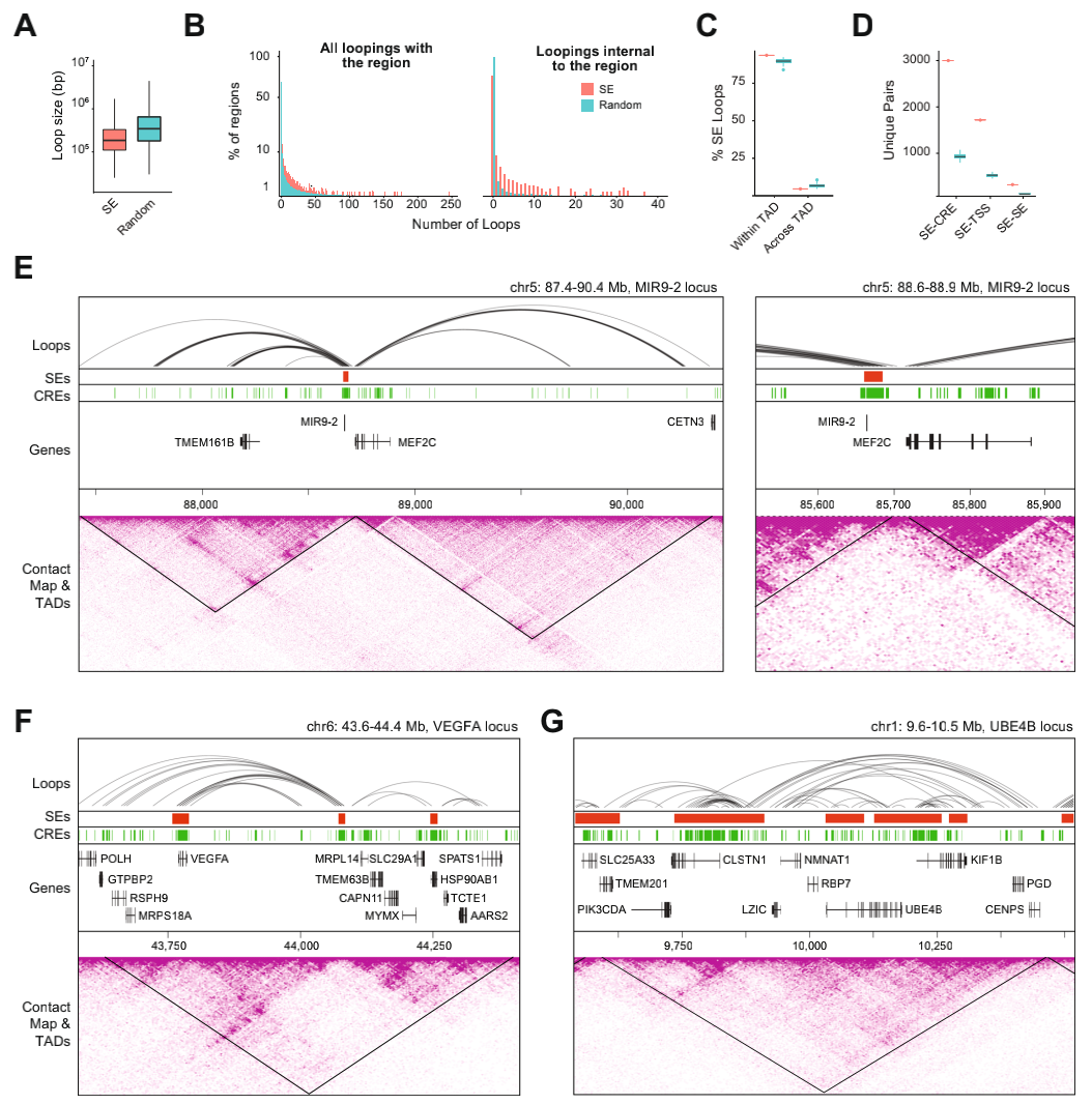 4、SE在TAD內(nèi)部loops富集并參與基因表達(dá)調(diào)控