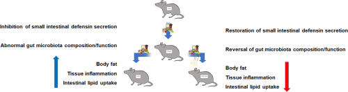 一句話總結(jié):EA通過(guò)促進(jìn)腸道防御素、拯救失調(diào)的盲腸微生物菌群,以協(xié)同模式減少脂質(zhì)吸收來(lái)發(fā)揮抵抗肥胖作用。