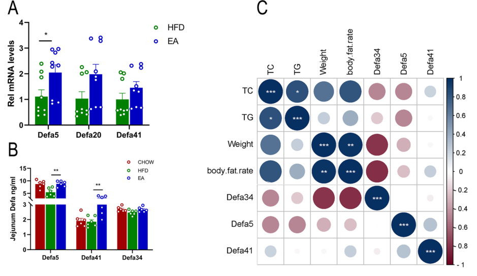 4、EA促進(jìn)防御素表達(dá)并抑制肥胖小鼠空腸脂質(zhì)吸收