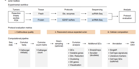 a.?建立了系統性的scRNA-Seq和snRNA-Seq的實驗流程和數據分析流程