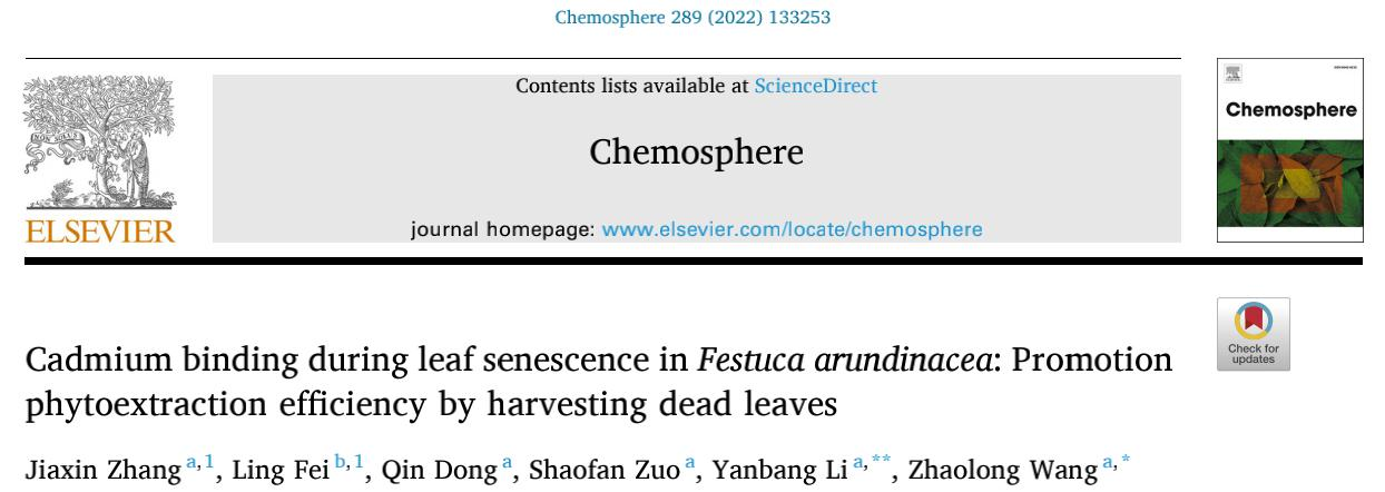 英文標題:CadmiumbindingduringleafsenescenceinFestucaarundinacea:Promotionphytoextractionefficiencybyharvestingdeadleaves