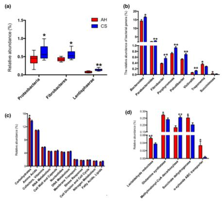 2、根據宏基因組學,AH組和CS組之間瘤胃微生物組的組成和功能差異