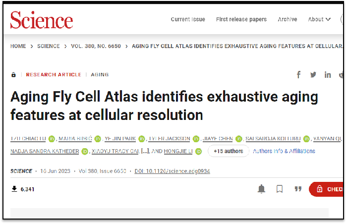 研究構建了以單細胞核轉錄組為基礎的果蠅生長細胞圖譜(AFCA)。展現了雄性和雌性果蠅生命周期內大多數組織的細胞水平的轉錄變化特征。提供了與年齡有關的基因表達變化、細胞組成的改變以及與衰老相關的共同途徑的新見解。