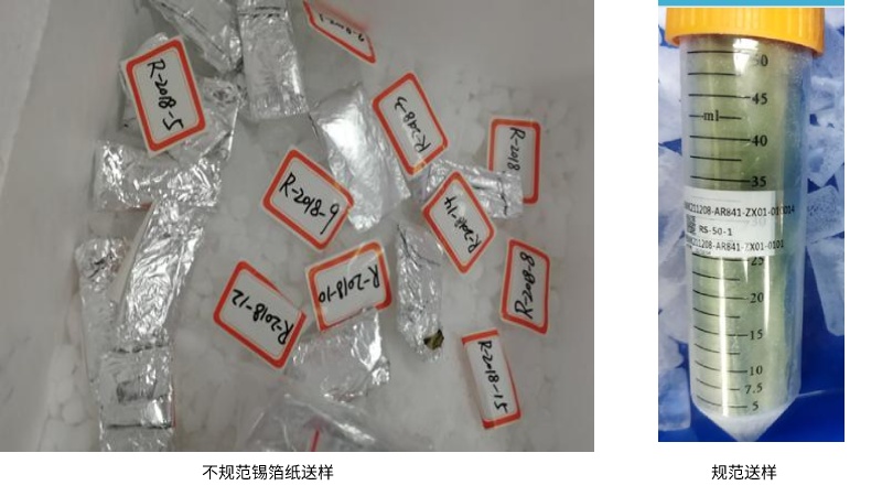 ②干燥樣品現在不建議送樣,提取成功率低,如果只有干燥樣品,使用紙質袋裝樣,在 外包裝自封袋中可以統一裝硅膠干燥顆粒。