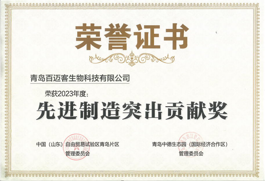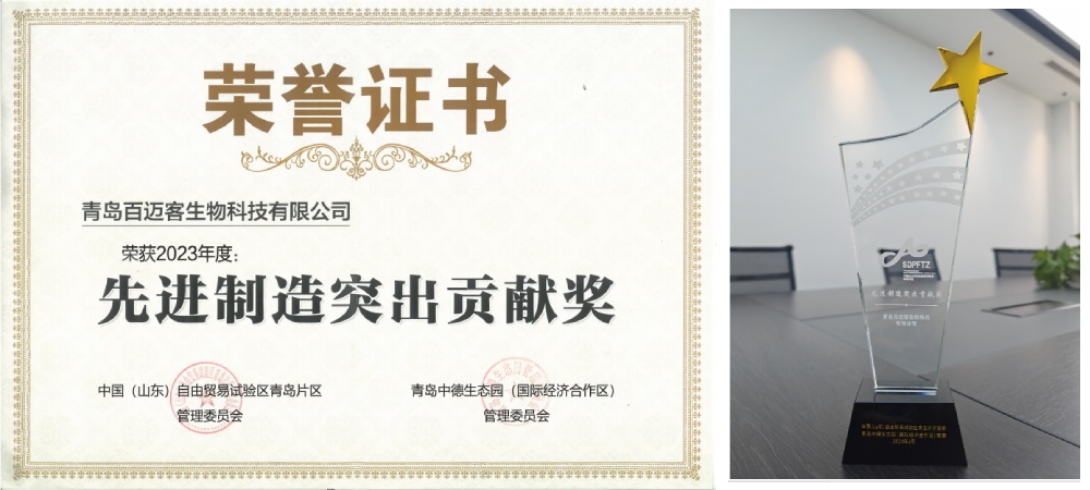 近日,中國(山東)自由貿易試驗區青島片區管理委員會組織開展了2023年度“先進制造突出貢獻獎”“常青藤企業獎”等九個獎項評選,旨在大力弘揚企業家精神,激發企業和企業家的創業熱情,推動先進制造業發展。百邁客生物從眾多企業中脫穎而出,榮獲“2023年度先進制造突出貢獻獎“。