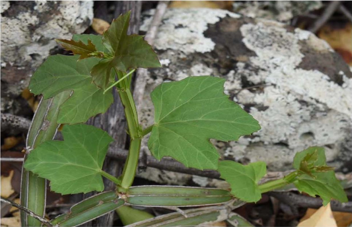 方莖白粉藤(Cissus quadrangularis)是葡萄科白粉藤屬多年生肉質藤本,主要分布于熱帶亞熱帶地區,具有很強的抗旱能力。方莖白粉藤的葉片和莖中的光合途徑不同,葉片中為C3途徑,而莖中為景天酸代謝(crassulacean acid metabolism,CAM)途徑,是研究植物干旱適應和CAM起源的好材料。