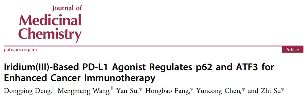 Deng D, Wang M, Su Y, Fang H, Chen Y, Su Z. Iridium(III)-Based PD-L1 Agonist Regulates p62 and ATF3 for Enhanced Cancer Immunotherapy.?J Med Chem. 2024 Apr 25;67(8):6810-6821. doi: 10.1021/acs.jmedchem.4c00404. Epub 2024 Apr 13