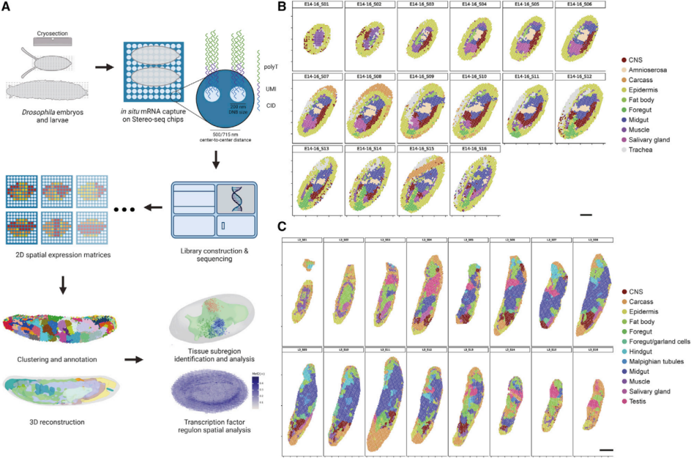 英文標題:High-resolution 3D spatiotemporal transcriptomic maps of developing Drosophila embryos and larvae