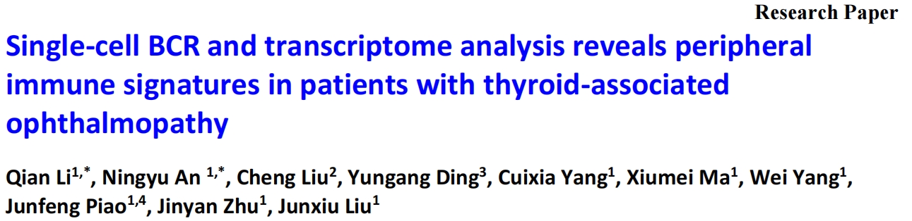 文章標題:Single-cell BCR and transcriptome analysis reveals peripheral immune signatures in patients with thyroid-associated ophthalmopathy