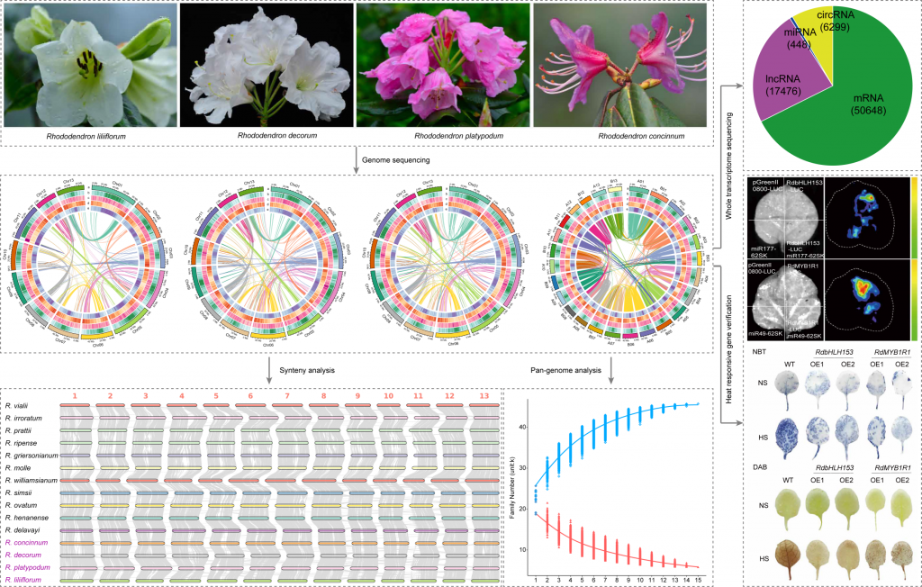 杜鵑花屬于杜鵑花科,是木本植物中最大的屬之一。全世界大約有1000種杜鵑花,中國是重要的分布中心。它們在喜馬拉雅-橫斷山脈經歷了進化輻射,橫斷山脈是世界生物多樣性的熱點。杜鵑花屬植物因其觀賞價值而在園藝中占有重要地位。全球氣候變化導致溫度升高,而熱脅迫會影響植物的生長發(fā)育。然而,杜鵑花植物通常適應較冷的氣候。利用多組學分析和分子生物學技術研究杜鵑花對高溫脅迫的響應機制,對選育耐熱品種、擴大杜鵑花栽培范圍具有重要意義。