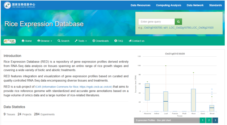 ☆?水稻基因表達庫RED:是一個基因表達譜存儲庫,對跨越整個水稻生長階段的組織進行?RNA-Seq?數據分析,涵蓋各種生物和非生物處理。
