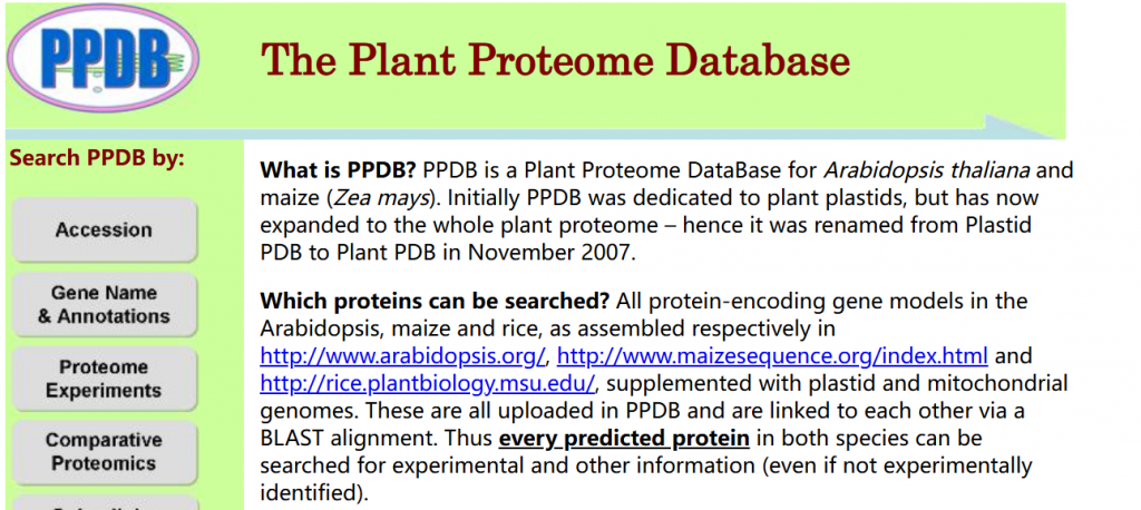 ☆?擬南芥和玉米蛋白質組數據庫:為通過實驗鑒定擬南芥和玉米中的蛋白質提供了集成資源。內部BLAST比對鏈接玉米和擬南芥信息,實驗鑒定基于細胞類型特異性蛋白質組或特定亞細胞蛋白質組(例如葉綠體,類囊體,核苷)和總葉蛋白質組樣品的內部質譜(MS)。