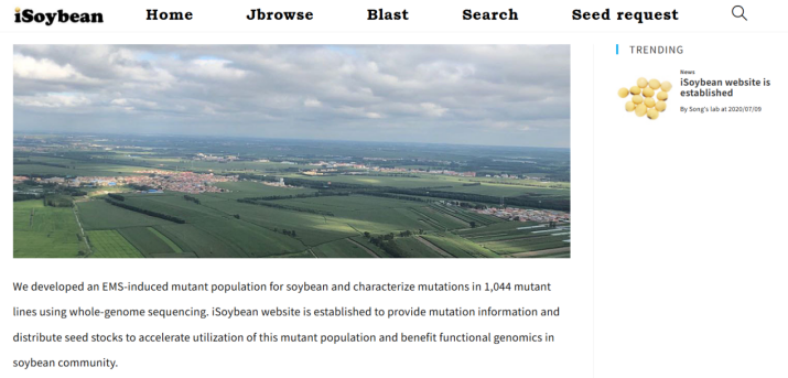 ☆?iSoybean:收集了EMS誘變的大豆突變種群,并利用全基因組測序技術對1,044個突變系中的變異進行了詳細表征。該網站致力于提供關于大豆突變體的詳盡信息,并通過種子庫分發這些突變體,促進其在功能基因組學研究領域的快速應用。