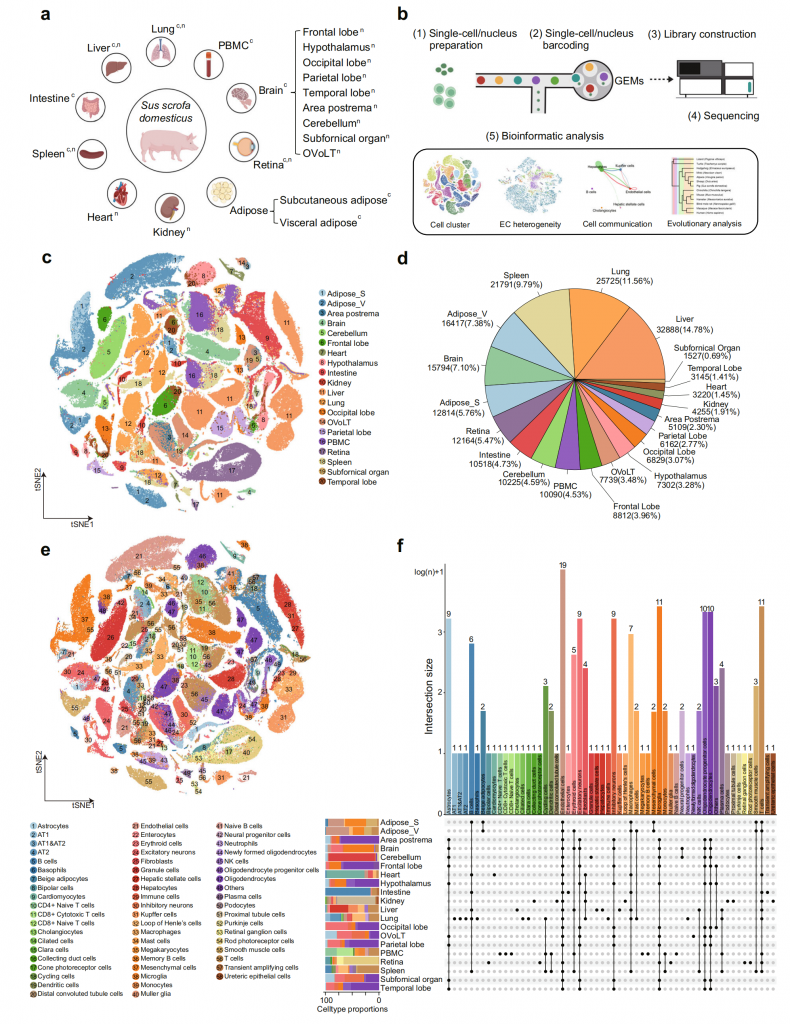 單細胞轉錄組,6個月大豬,肝(n=1),血液PBMC(n=1),視網膜(n=1),脾臟(n=1),腸道(n=1),肺(n=1),脂肪組織(n=2)。