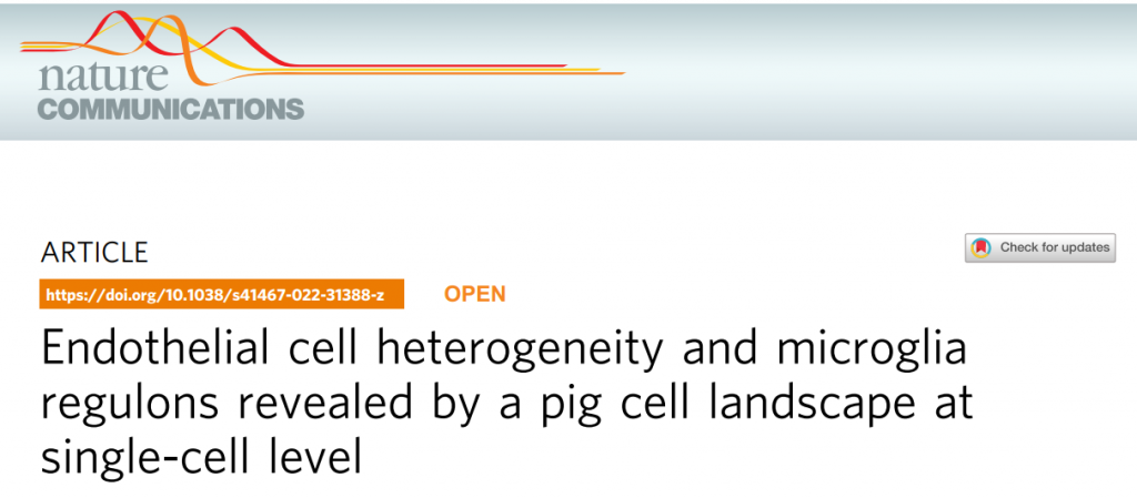 12. Wang F, et al. Endothelial cell heterogeneity and microglia regulons revealed by a pig cell landscape at single-cell level. Nat Commun. 2022 Jun 24;13(1):3620.