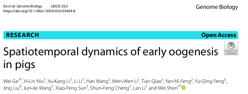 1. Ge W, Niu YL, et al. Spatiotemporal dynamics of early oogenesis in pigs. Genome Biol. 2025 Jan 2;26(1):2.