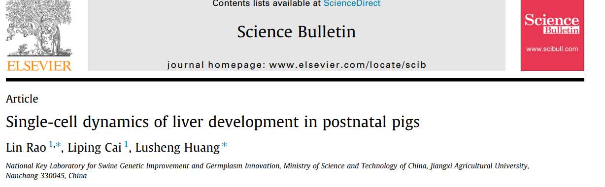 英文標題:Single-cell dynamics of liver development in postnatal pigs