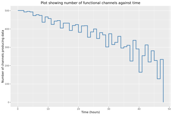 此部分內容統計了隨測序時間變化,測序累計序列個數,堿基個數,測序速度和有效工作納米孔數等指標的變化情況。