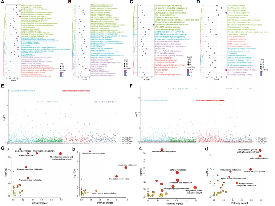 圖2?HT和GD中失調(diào)的基因表達(dá)與異常的免疫級聯(lián)和代謝信號傳導(dǎo)有關(guān)