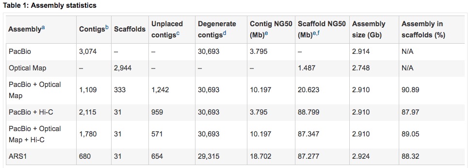 三代測序具有長度長的特點,平均讀長在10-15Kb,而二代測序的讀長為PE125-250bp,所以二代測序在遇到重復序列,雜合難題時,就很無力。而三代測序能有效的解決這些問題。所以三代基因組具有超高的組裝指標,組裝錯誤率更低,組裝的完整性更好等優點。